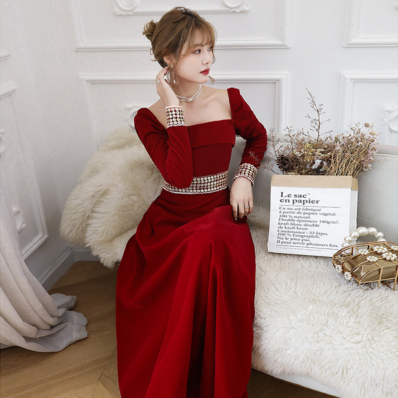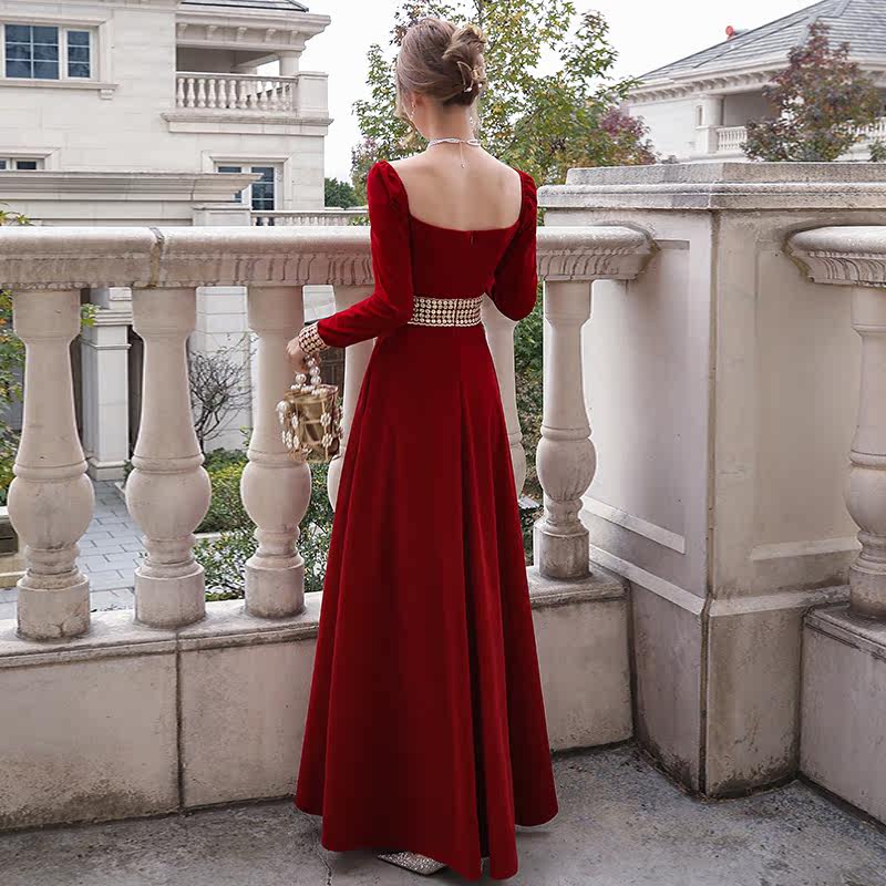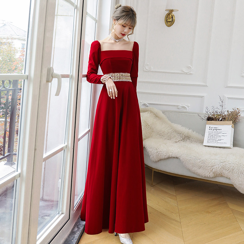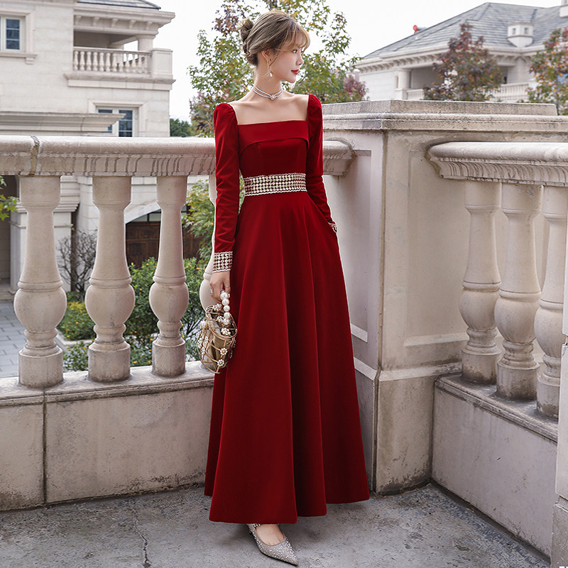 Toast bridal spring autumn 2022 new air quality light and luxurious Wine Red Engagement Gown Dress Woman Long Sleeve High End