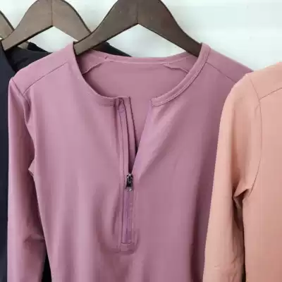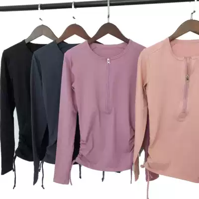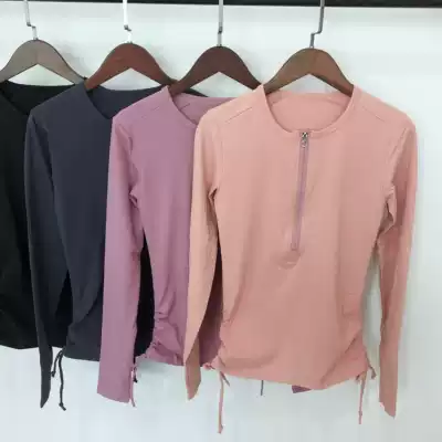 Cost-effective drawstring sports top women's slim-fit breathable fitness long-sleeved T-shirt running zipper yoga suit spring and autumn