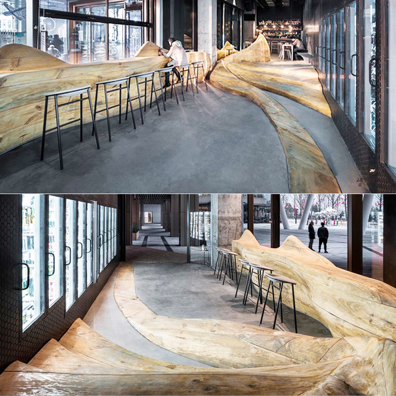 Min Juku Bar Solid Wood Special-Shaped Decorative Set Hotel Lobby Space Styling Design Tech Gallery Art Creative Customization
