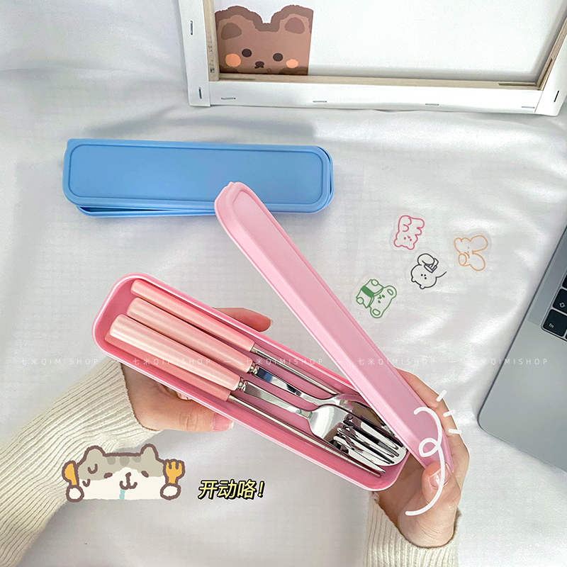 Seven-meter chopsticks spoon and fork three-piece set 304 stainless steel ins wind cute student office worker environmental protection portable set