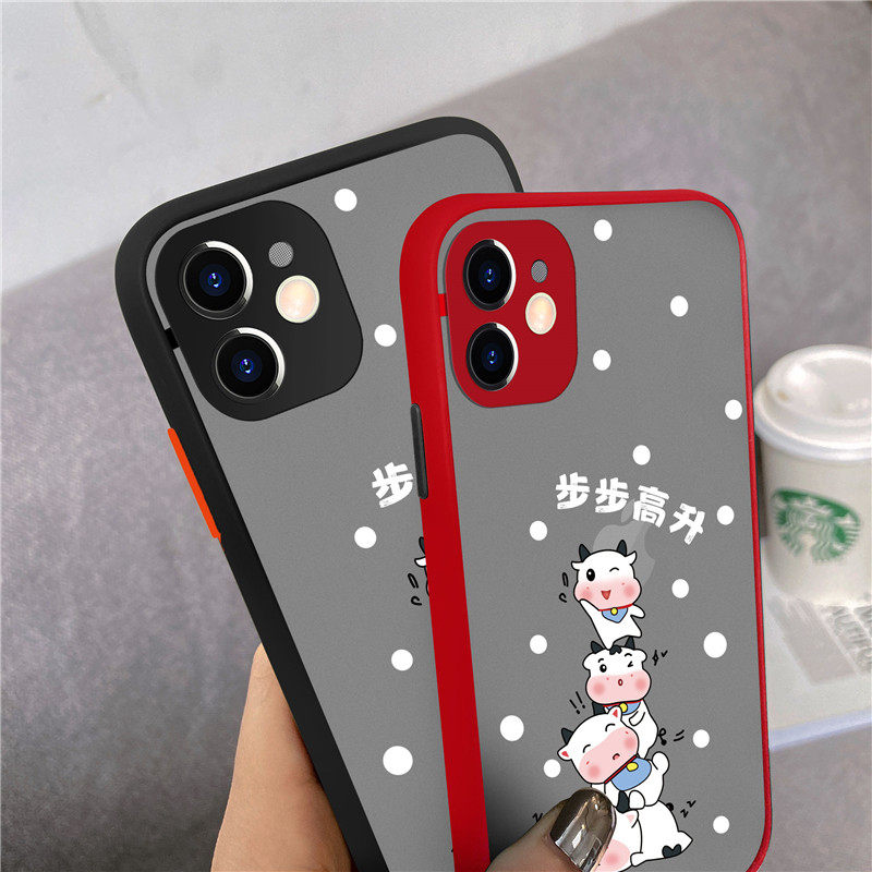 Bull Year Apple 11 Phone Protection Shell Red Step High Up iphone11 Lens Protection Anti-Fall Apple 11promax Crash Frosted Translucent Apple 11Pro Cute Cartoon 2