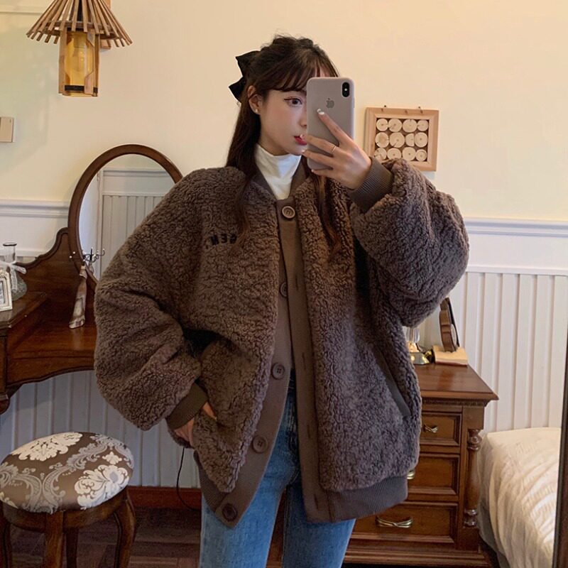 celine pianna new lamb wool coat female winter Korean version 100 hitch thickened small sub casual blouse