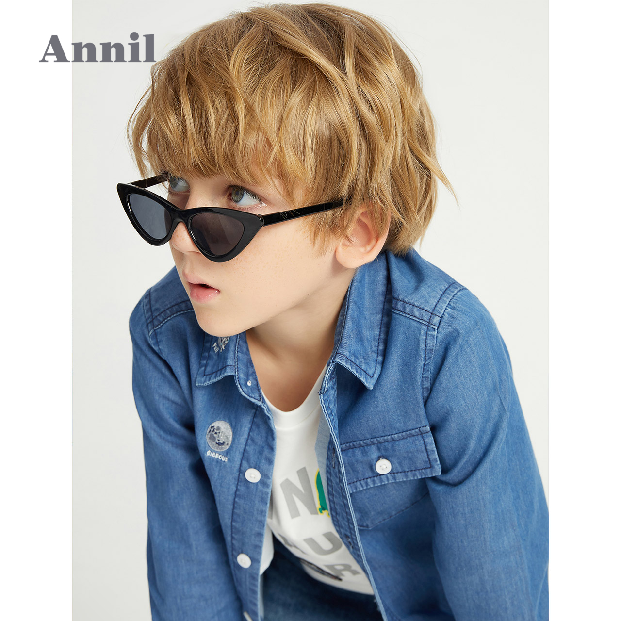 Annai children's cotton lapel denim shirt for boys Spring 2021 New student long-sleeved shirt top