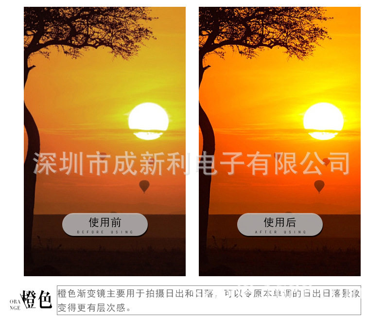 Gradient Orange Digital Filter Monocular Filter Half Color Filter Gradient Filter 37mm