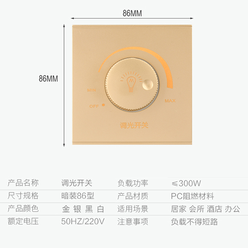 Type 86 no extreme power knob brightness dimmer panel thyristor LED incandescent dimming switch 220v