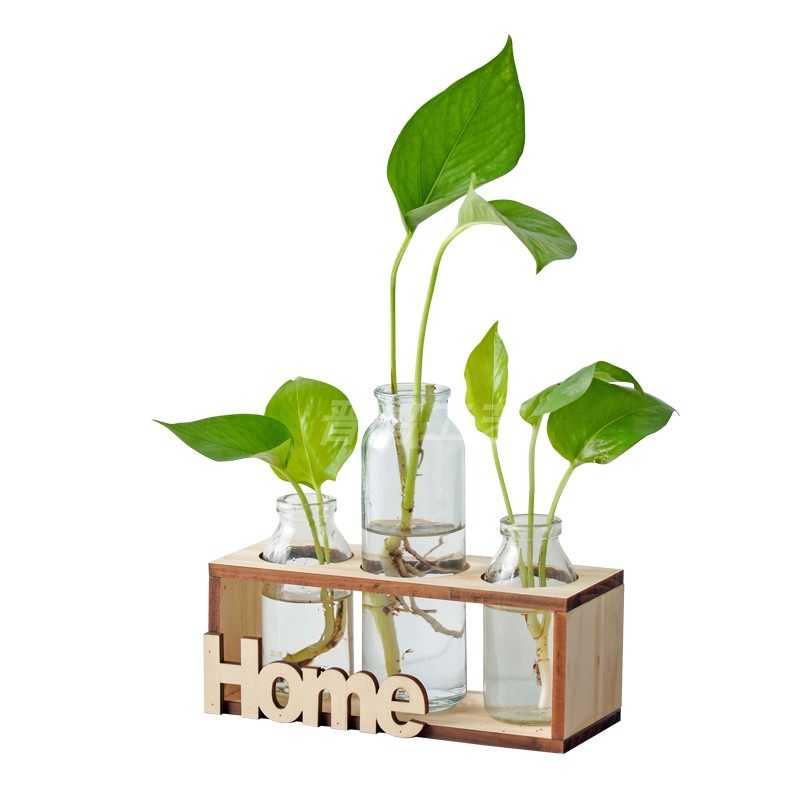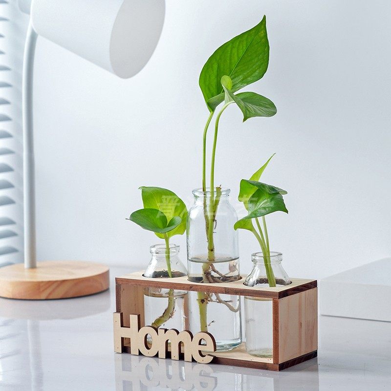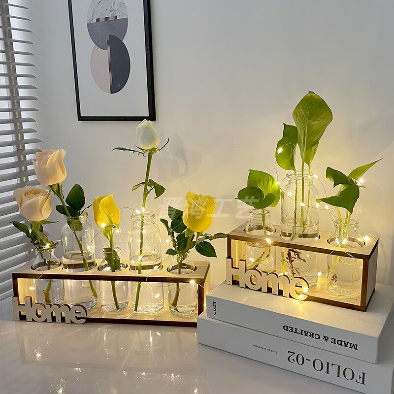 Net red glass small vase creative living room desktop flower arrangement swing piece office wood transparent minimalist hydropony decoration