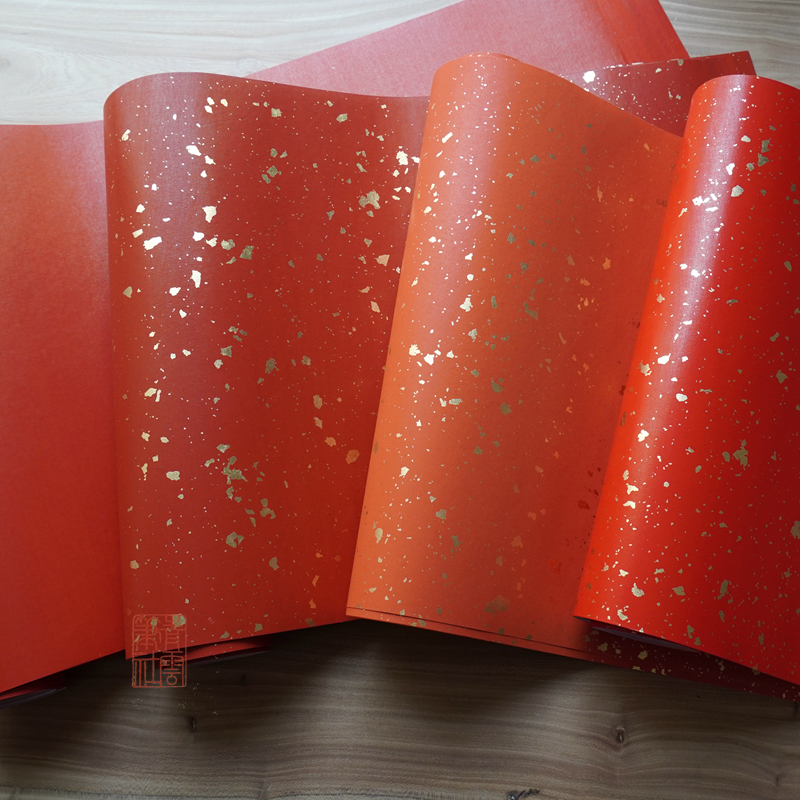 Green Cloud Pen Social Red Department Snowflake Gold Flowers Gold paper This wax letterhead The ancient craftsmanship is fully cooked with gold Xuan paper-Taobao