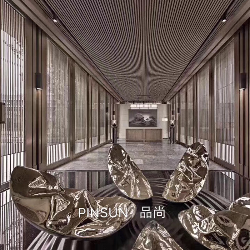 Metal electroplated water ripple flowering petal type floor sculpture Hotel lobby Villa club Sales center ornaments