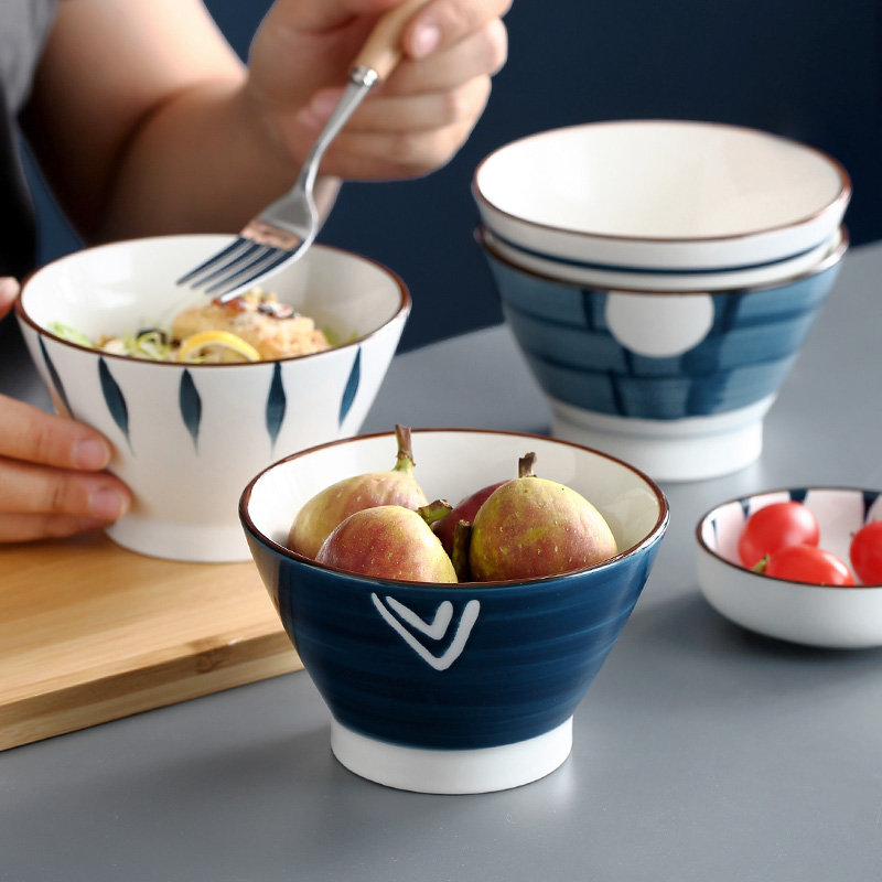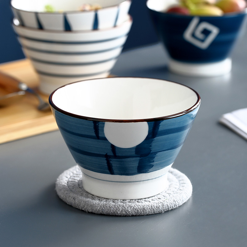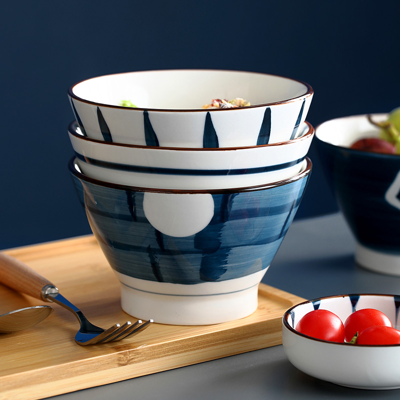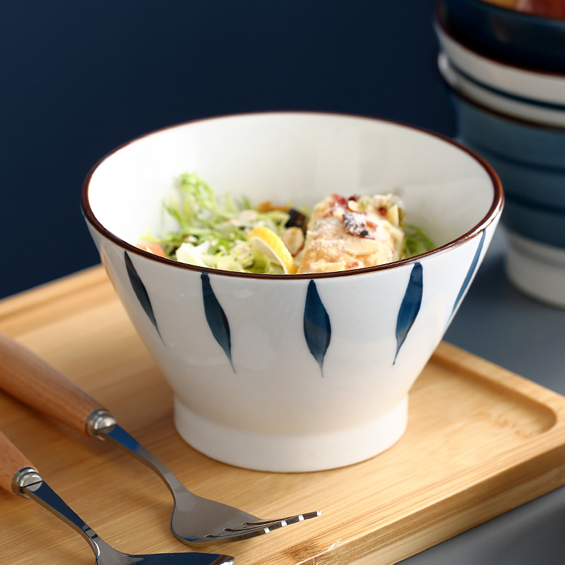 Japanese-style ceramic bucket hat bowl high-footed bowl slanted mouth bowl creative personality household bowl single anti-scalding thickened rice bowl