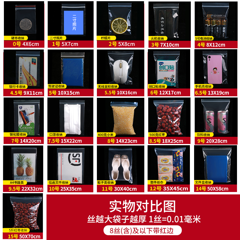 Transparent fresh-keeping large, medium and small PE thickened self-sealing bag storage plastic sealed food packaging wholesale customization