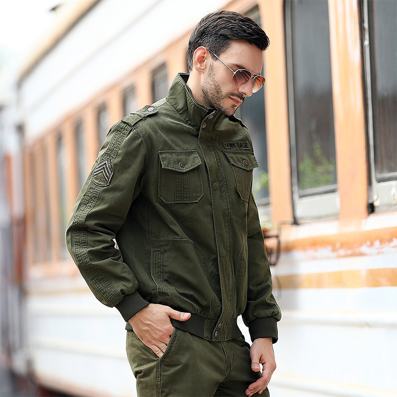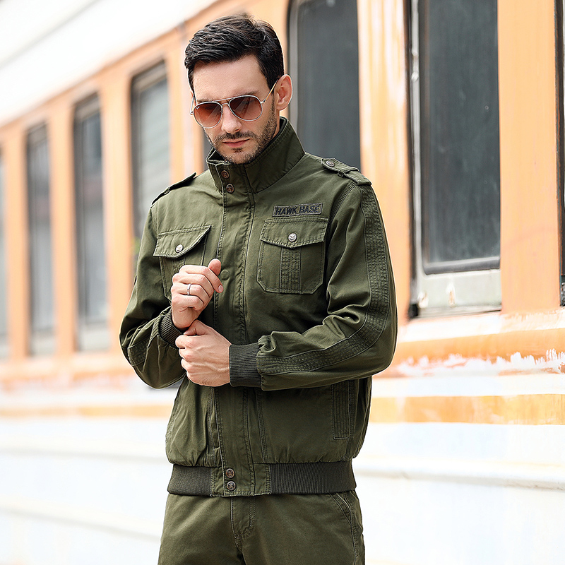 Spring Autumn Outdoor Military Fan Clothing Male Blouse Casual Pure Cotton Fashion Upright Collar Jacket Abrasion Resistant Military Green Tooling Jacket