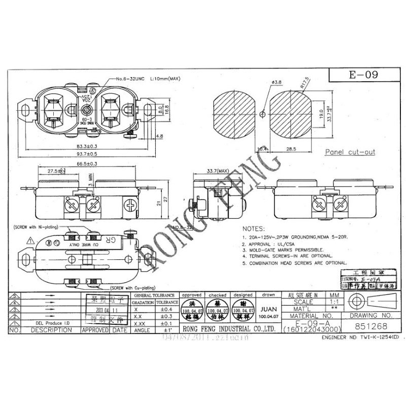 RONGFENG Rongfeng American American power supply double with ear socket 20A ferrule E-09-A original import