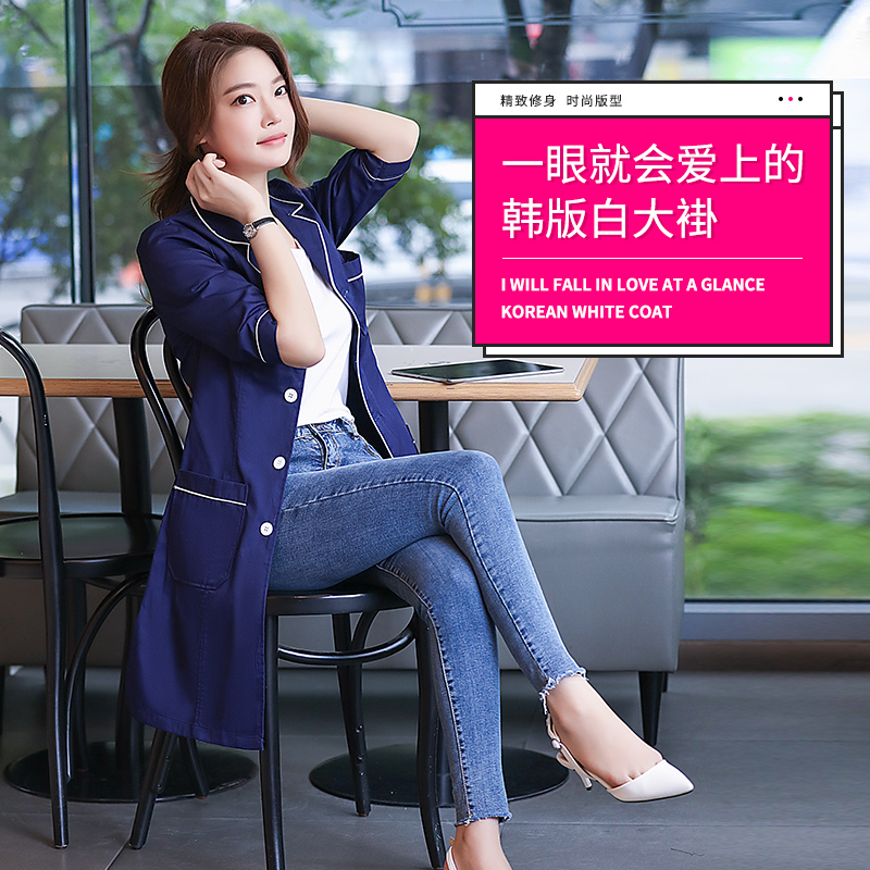 White coat beauty salon work clothes female tattoo embroidery semi-permanent long-sleeved middle sleeve short-sleeved autumn and winter skin management beautician