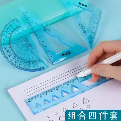Soft ruler 4-piece set Student stationery ruler set Triangle ruler Multi-function student first grade bendable ruler