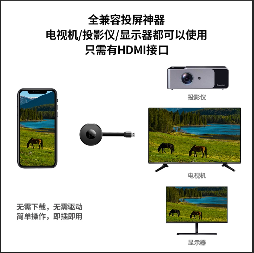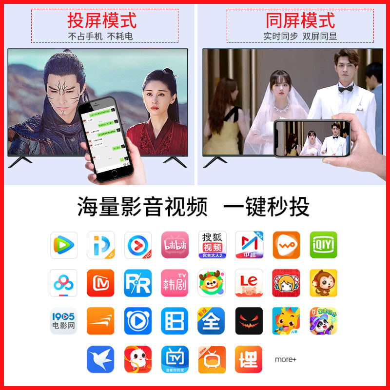 Wireless projection screen 4K HD mobile phone simultaneous screen is suitable for Android Apple Huawei Xiaomi computer connects old TV home frequency projector to HDMI in-vehicle transmission
