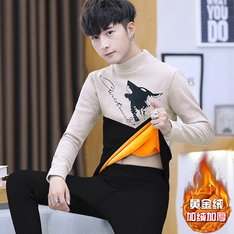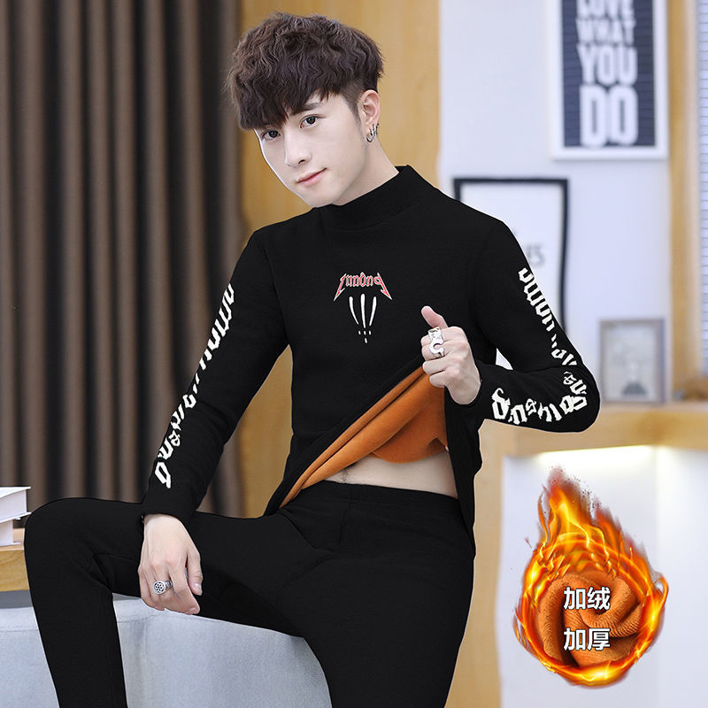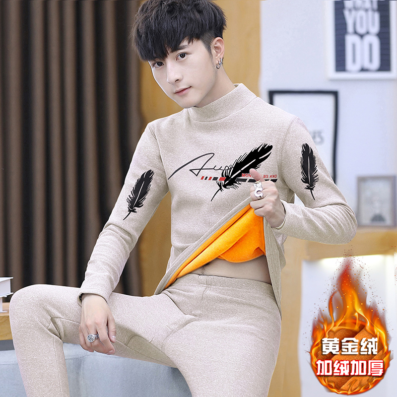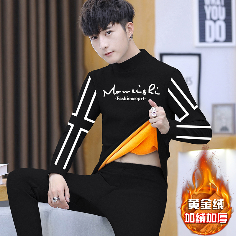 Teen Fever Clothes Men Winter Junior High School Students Thickened Gushed Boy Big Boy Autumn Clothes Sanitary Pants Anti-Chill Suit