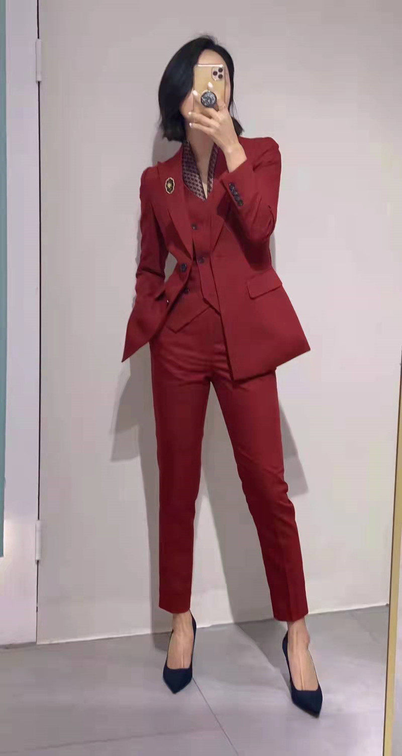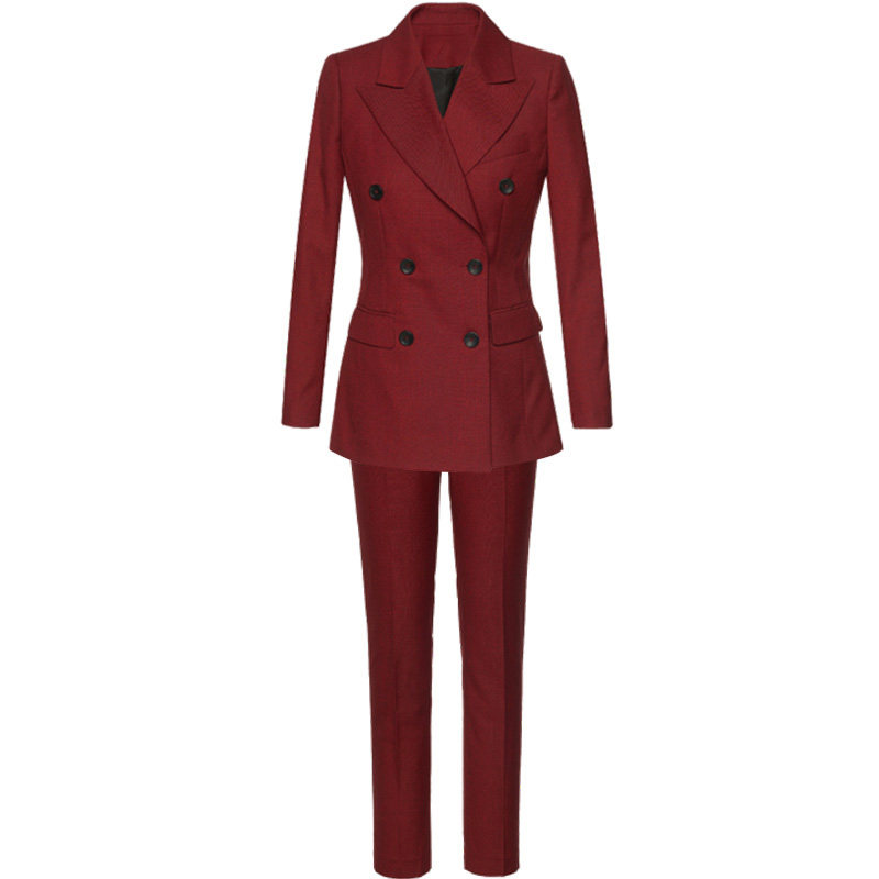 Wine red her double-breasted women's spring and autumn slim fit suit suit festive annual meeting retro temperament chair suit