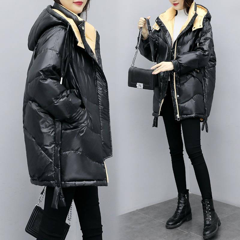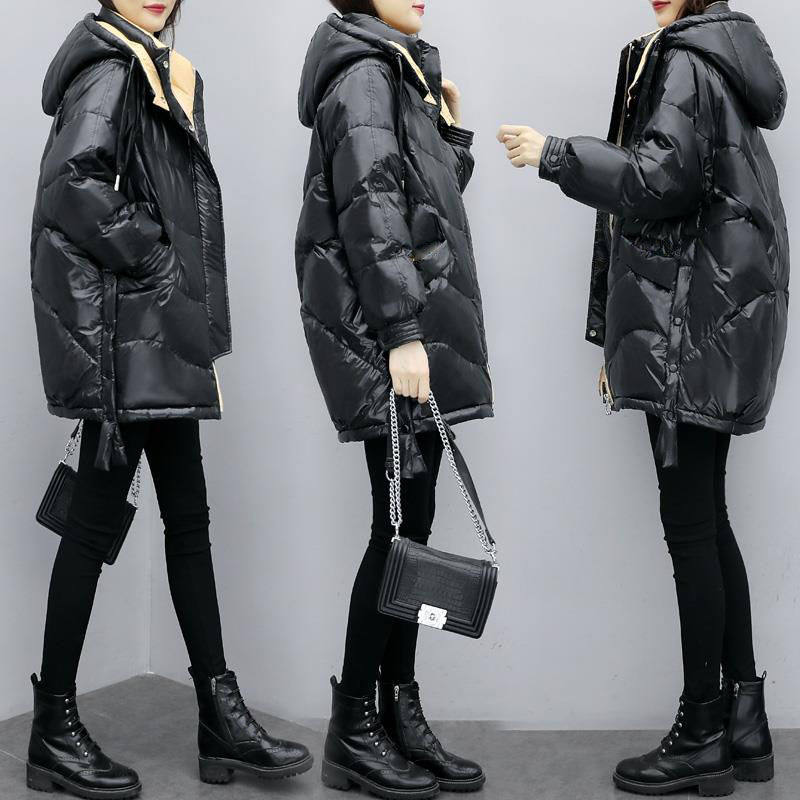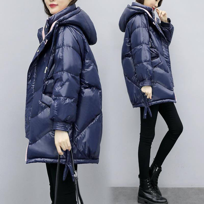 Bright down padded jacket women's 2020 new mid-length padded jacket loose thickened casual hooded winter cotton padded jacket