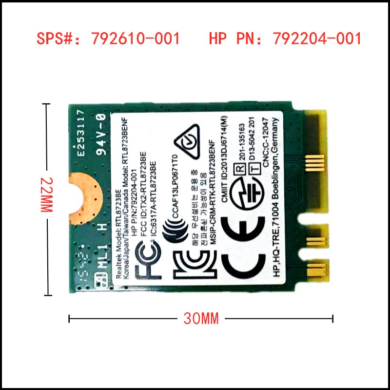 RTL8723BE RTL8723BE 802 11N Wireless Card NGFF M 2 Interface WiFi Bluetooth 4 0 792610-001
