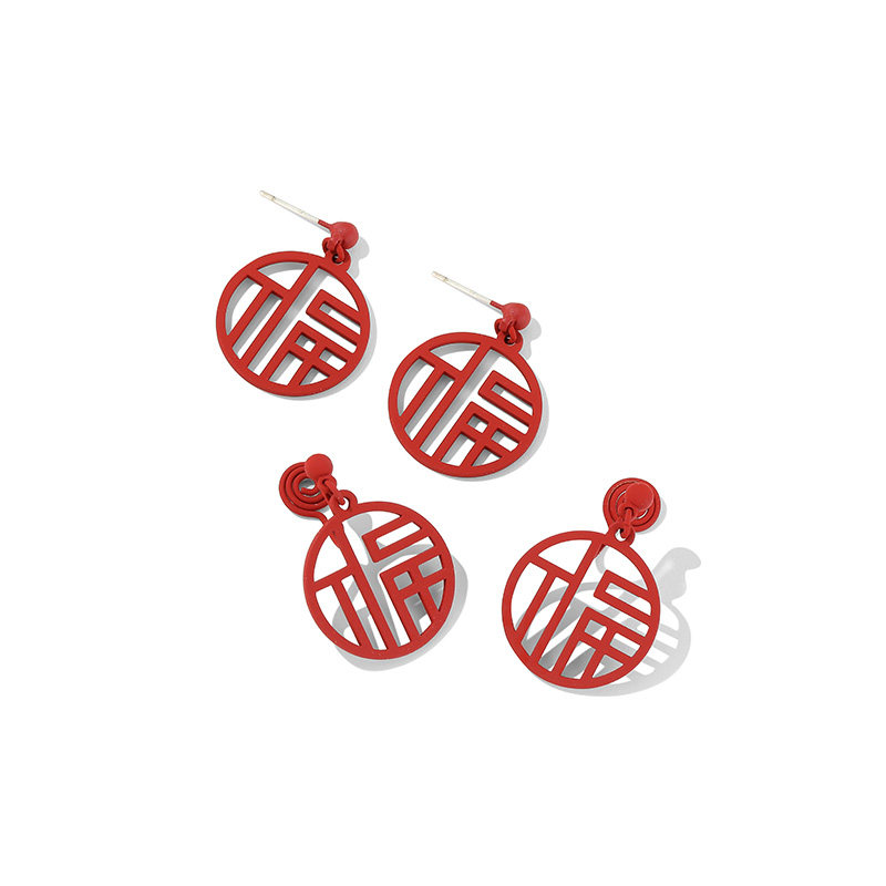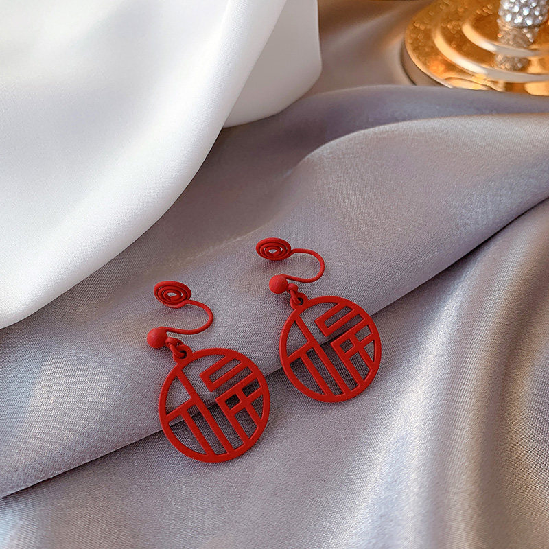 New Year's red blessing earrings festive earrings Chinese style ear acupuncture New Year ancient style ear clips female Hanfu ring