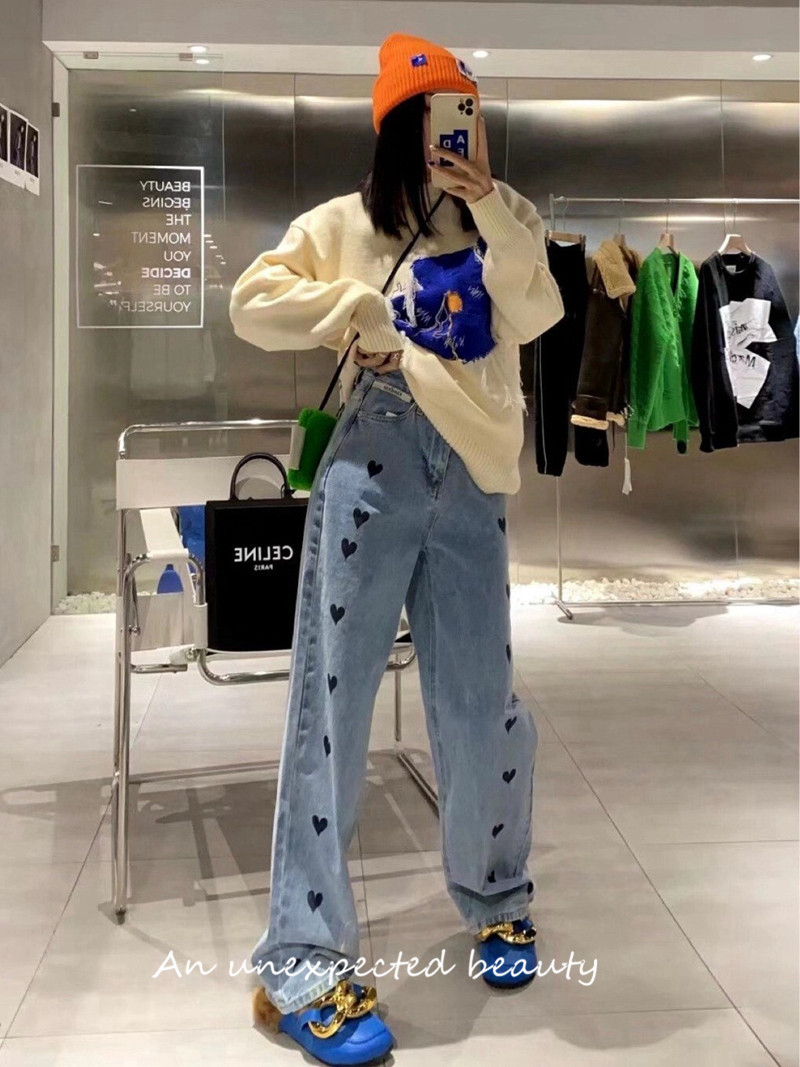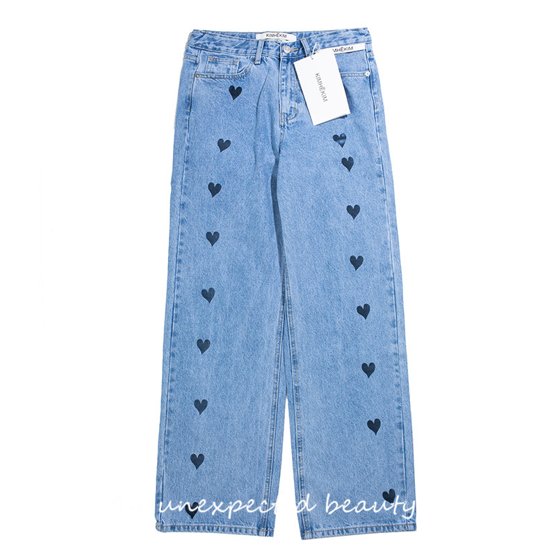 Kimhekim love jeans straight heart series high waist wide leg trousers autumn and winter new