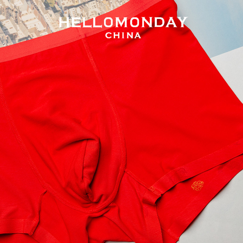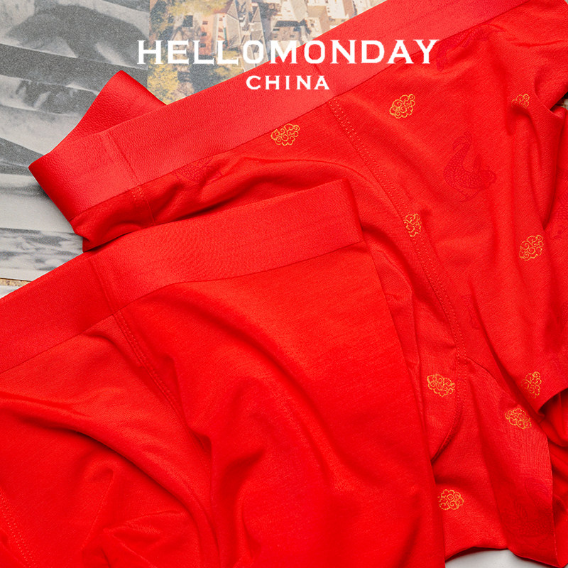 Plain Studio Modal Men Honmei Ox Girl Couples Flat Boxer Panties Big Red Wedding Triangle