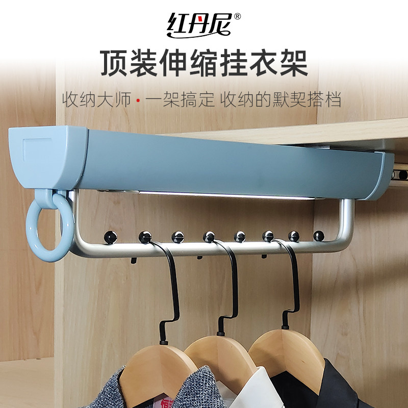 Top-fit telescopic hanger with induction lamp wireless charging shallow wardrobe hanging clothes-lever hanger with vertical loading and hanging clothes