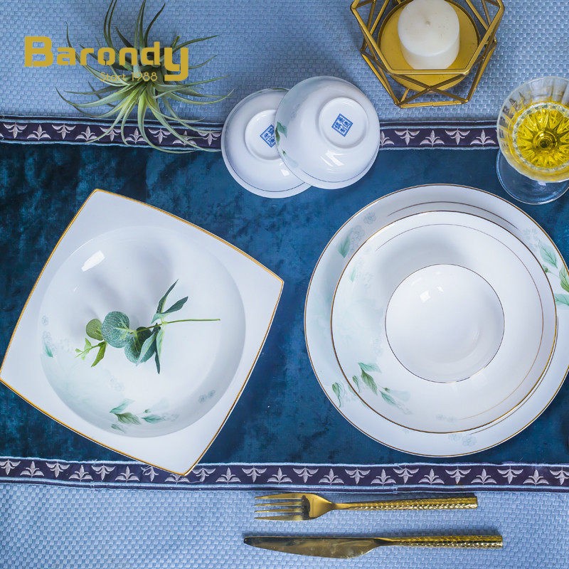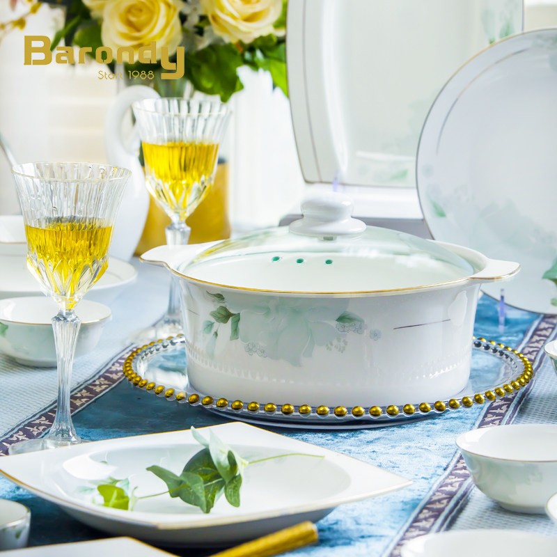 Barondy Jingdezhen High-end Tableware Bowls Bowls Plates Spoons Chopsticks Household Gold Inlaid Jade Porcelain Bowls Tableware Set