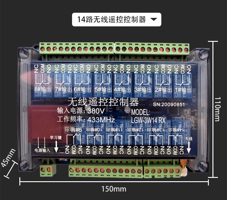 220V 380V 14-way 12-way 6-way 8-way wireless remote control switch jog self-locking interlocking distribution box industry 16