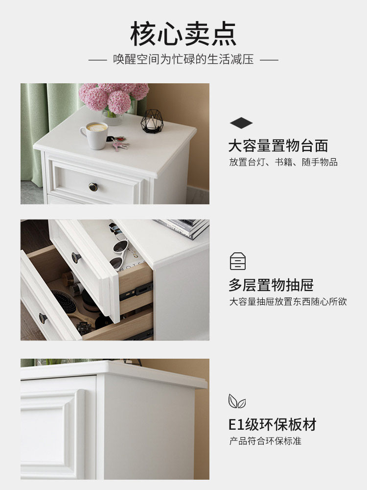 American bedside table home bedroom simple modern white non-solid wood storage bedside small apartment storage locker