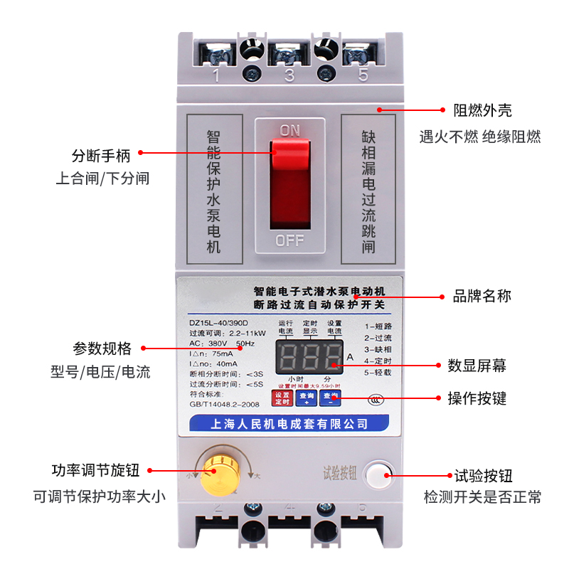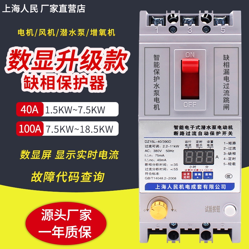 Shanghai People Shortage Phase Protector 380V Water Pump Motor Three-phase Absence Phase Switch Integrated Protector Earth Leakage Protection
