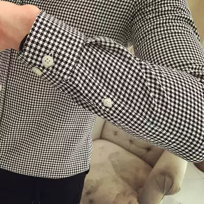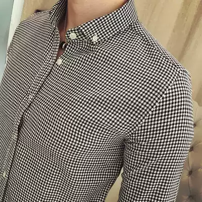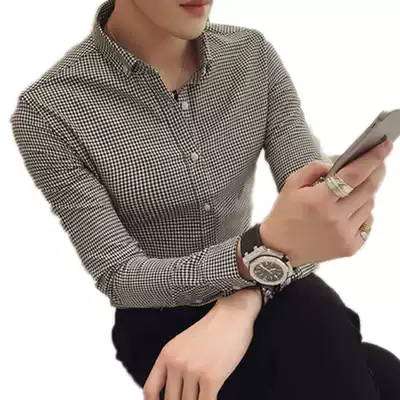 Plaid shirt men's long-sleeved Korean version of the trend casual slim-fit inch shirt free ironing handsome personality hairstylist men's shirt