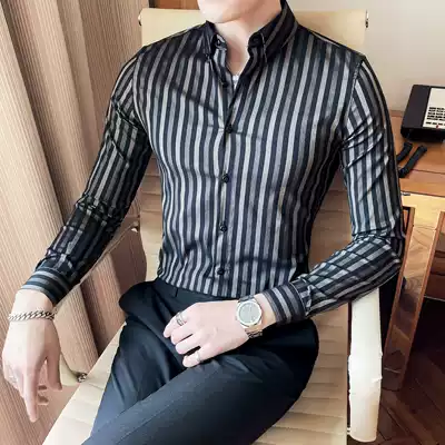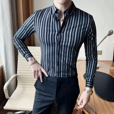 Long-sleeved shirt Men's slim stretch striped business casual shirt trend youth Korean handsome inch clothes free ironing