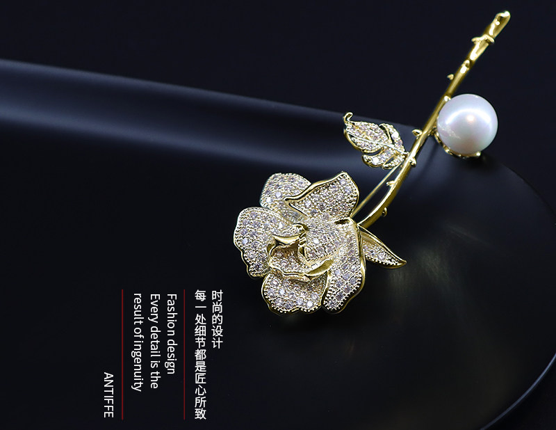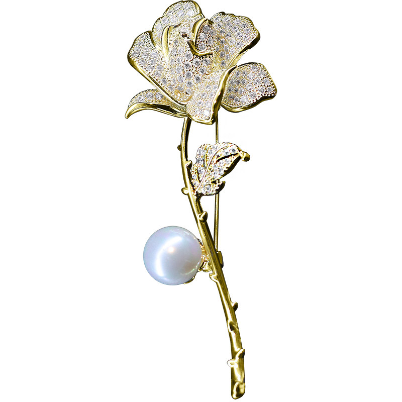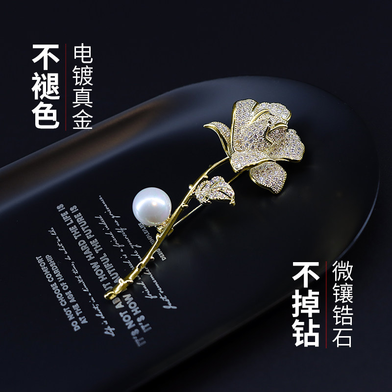 Rose flower brooch design sense niche female high-end exquisite luxury small fragrance all-match atmospheric corsage suit pin
