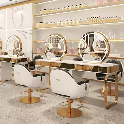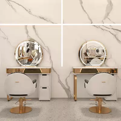 Stainless steel marble hair salon mirror table hair salon special cabinet one net red hair salon tide shop hair mirror