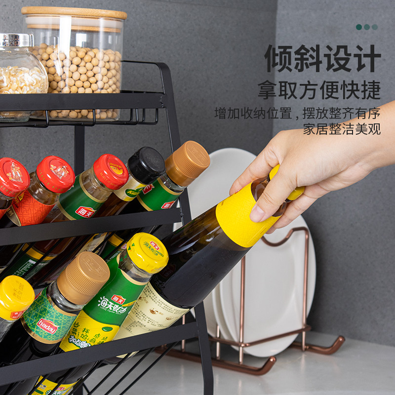 Slanted Seasonings Pint Shelf Kitchenette Free From Punching Table Face Pure Color Home Soy Sauce Vinegar Bottle Multilayer Containing Layer Shelf