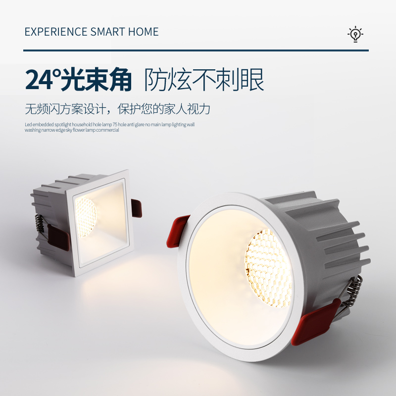 Home Cylinder Light Honeycomb Anti-glare Living Room No Main Light Narrow Side Spotlight Recessed LED ceiling lamp High display color Ra95