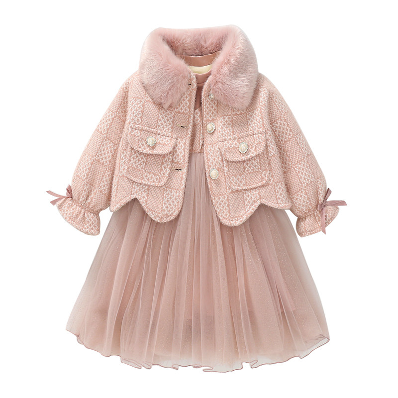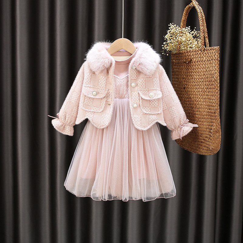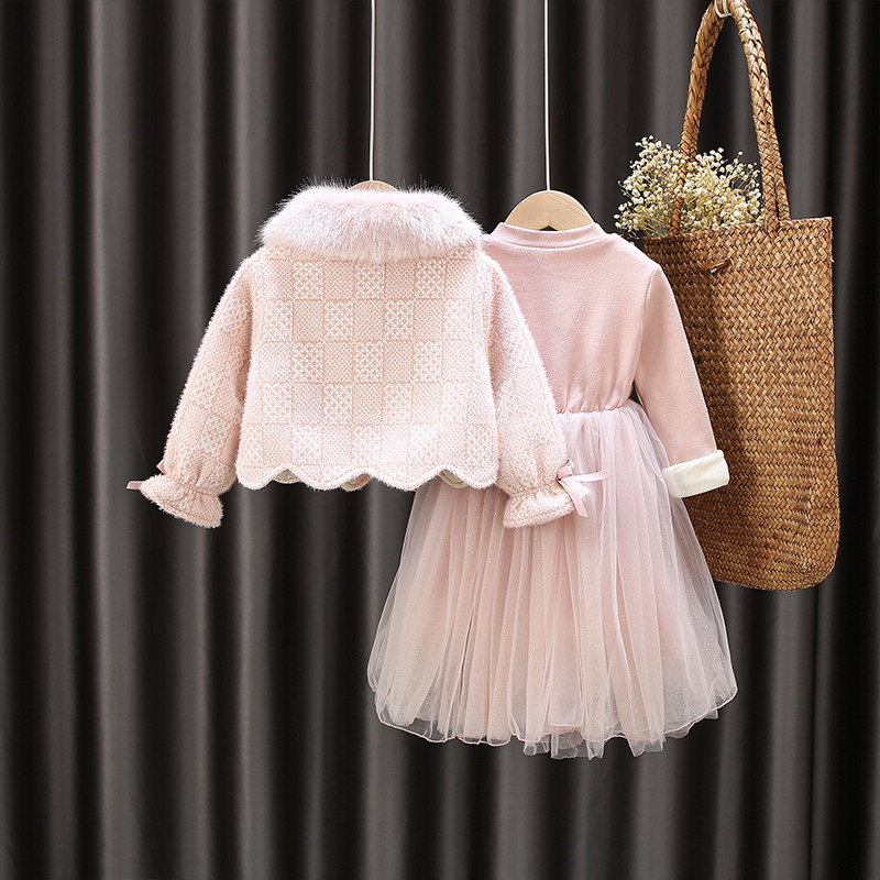 Girl 2022 Winter Dress New Children Foreign Pie Suit Plus Suede Thickened Skirt Little Girl Autumn Winter Ocean Dress Tide
