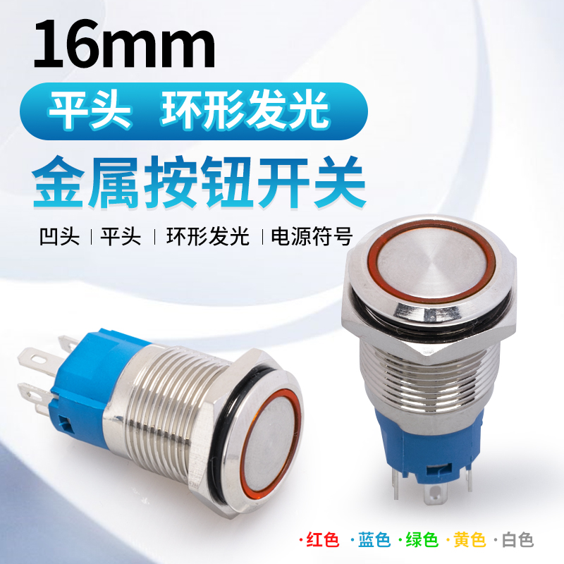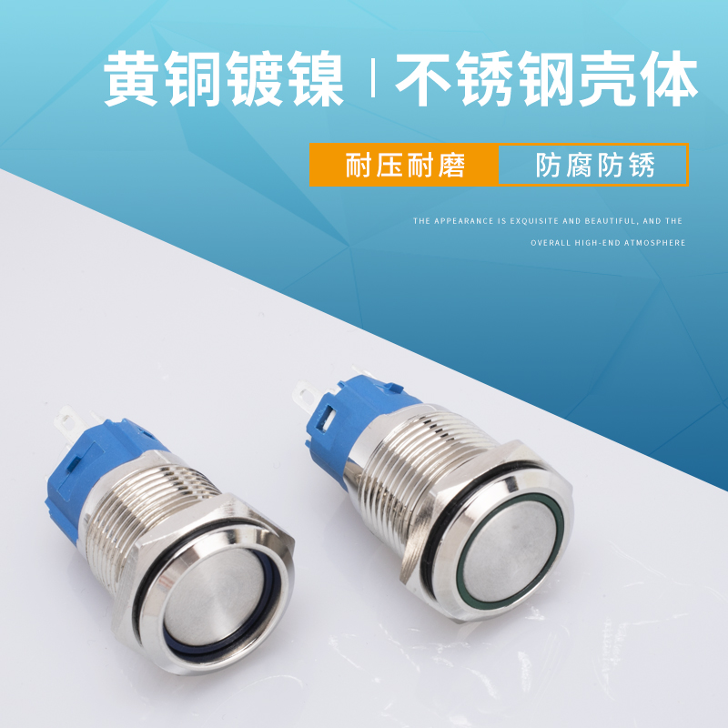 16mm metal switch button self-reset self-locking with light round waterproof start button with cable 12V power supply 220