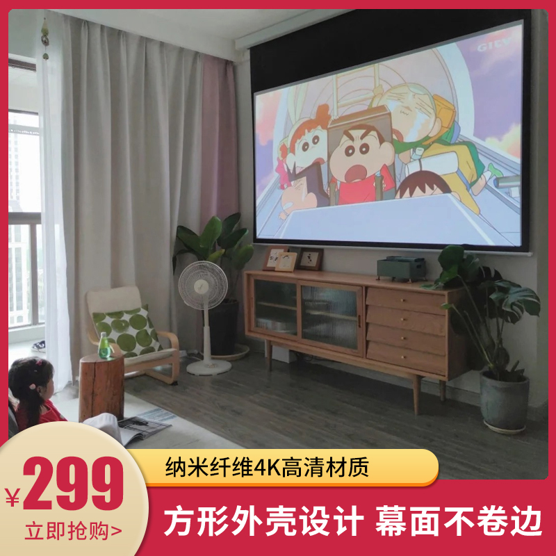 Leuber projection curtain cloth electric home nano HD 60 84100120 inch wall-mounted intelligent voice curtain cloth automatic lifting electric remote control anti-light suitable for extreme rice millet projector