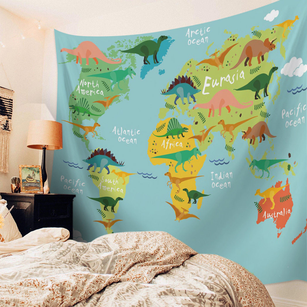 Cartoon Animal World Map Walls Children's Room Backroom Clothes Bedroom Decorated Wall Dormitory Tapestry