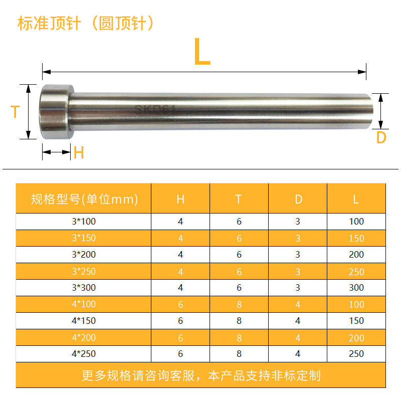 SKD61 mold thimble ejector cylinder flat thimble inlaid needle support needle high temperature resistant H13 full hard thimble non-standard customization