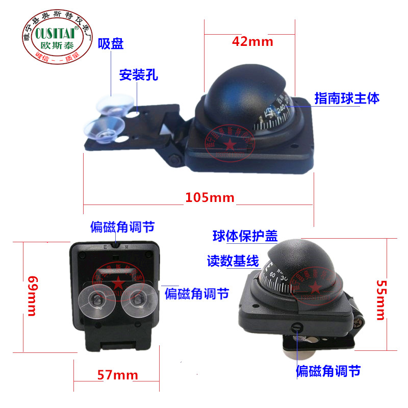 Ostel Chinese English high-precision bias angle suction cup type outdoor off-road vehicle compass compass for vehicles