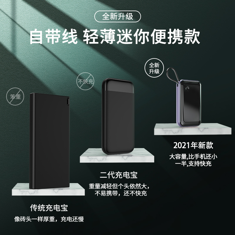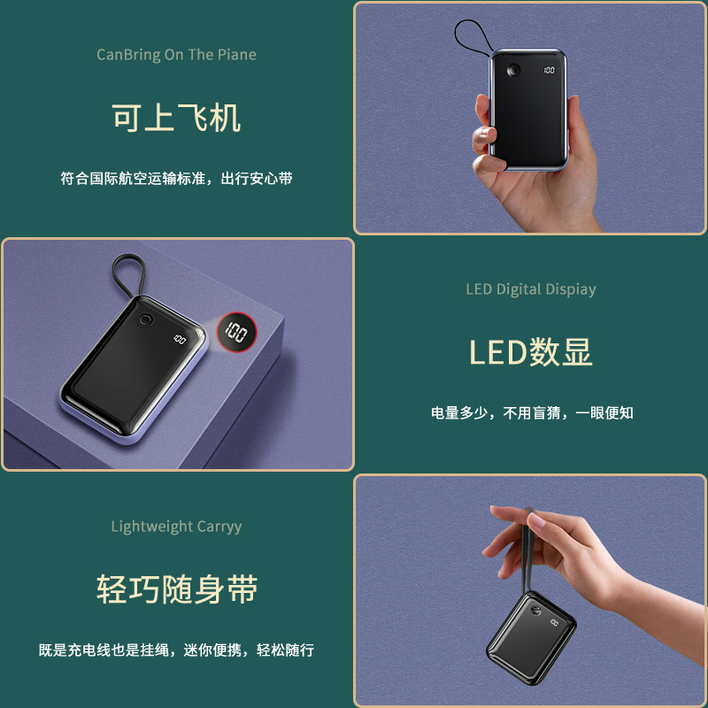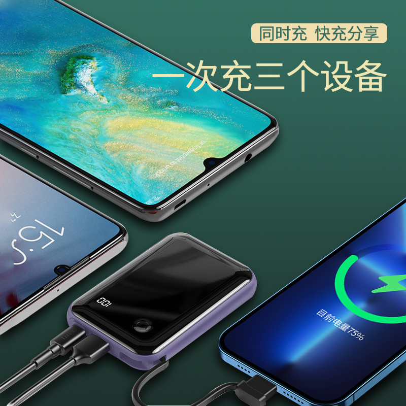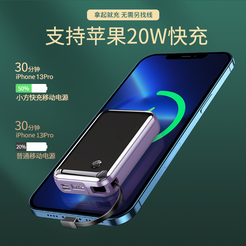 Beth Charging Treasure 20,000 mAh self-cable small square 20W fast charge super capacity ultra-thin compact portable mobile power supply is suitable for Apple dedicated Huawei 12 with data cable