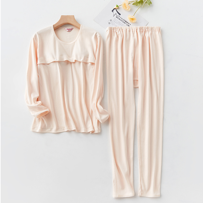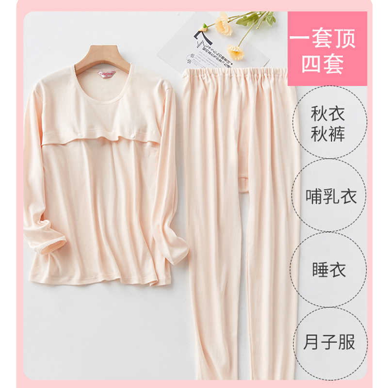 Lactation clothes sanitary pants pure cotton pregnant woman blouses breast-feeding and warm pure cotton lunar subsuit Sleeping postpartum