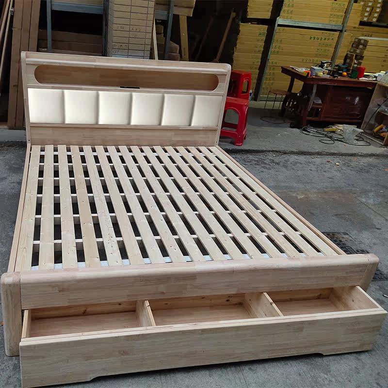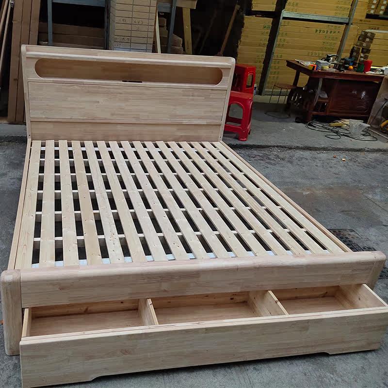 Nordic modern minimalist 1 8 double bed master bedroom solid wood bed economic log single bed 1 5 meters 1 35 home