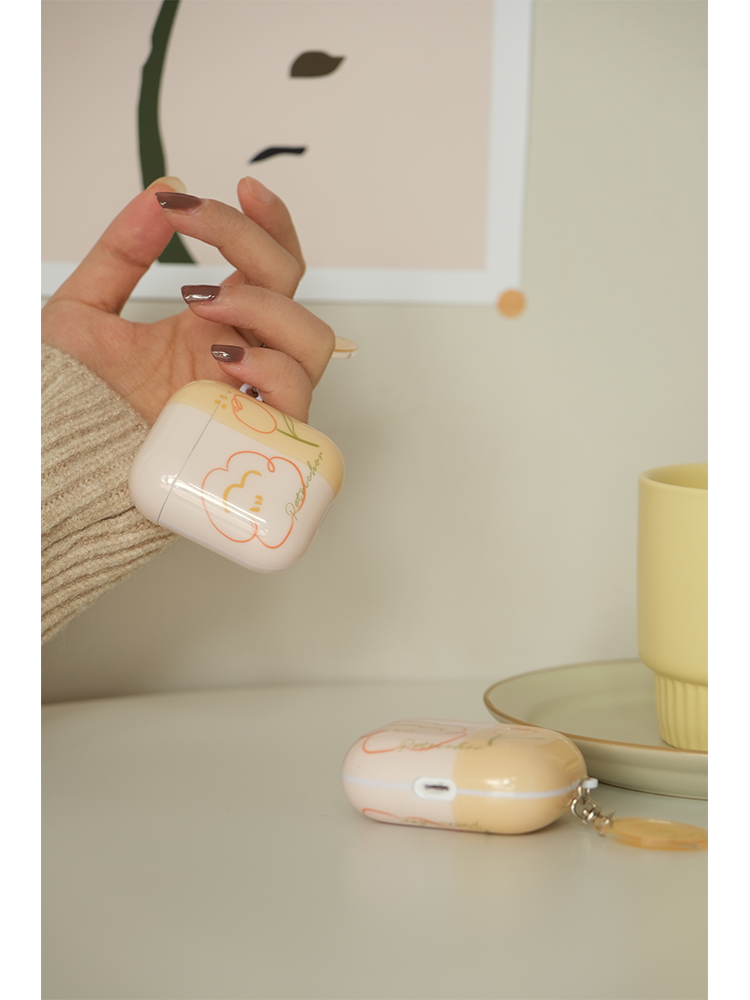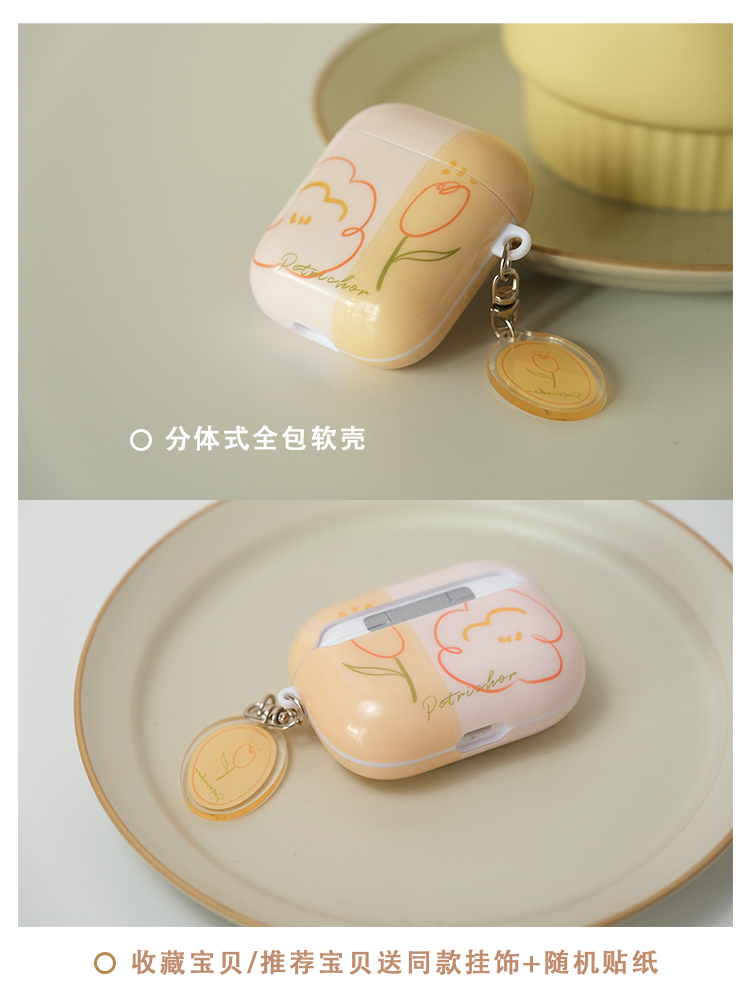 French tulip is suitable for air pods 12 generation headphones soft shell 3 pro cream yellow two piece protective suit full pack