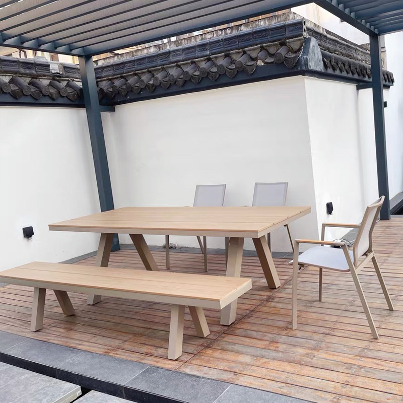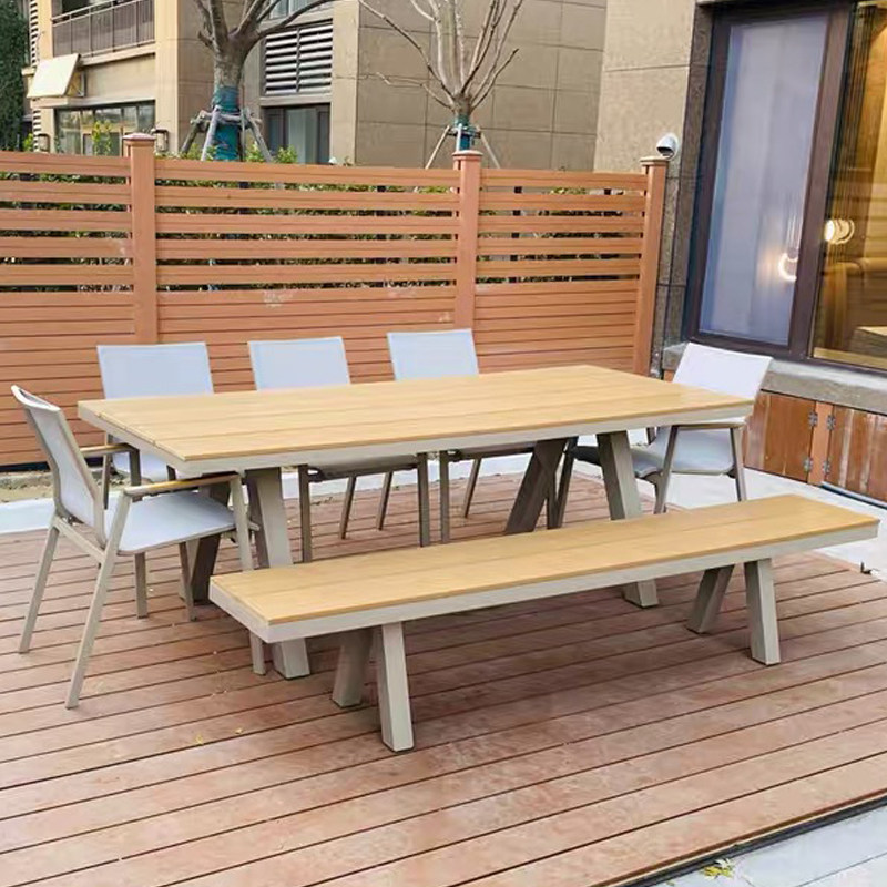 Outdoor tables and chairs furniture villa garden plastic wood dining table open-air anti-corrosion wood large long table outdoor garden yard terrace