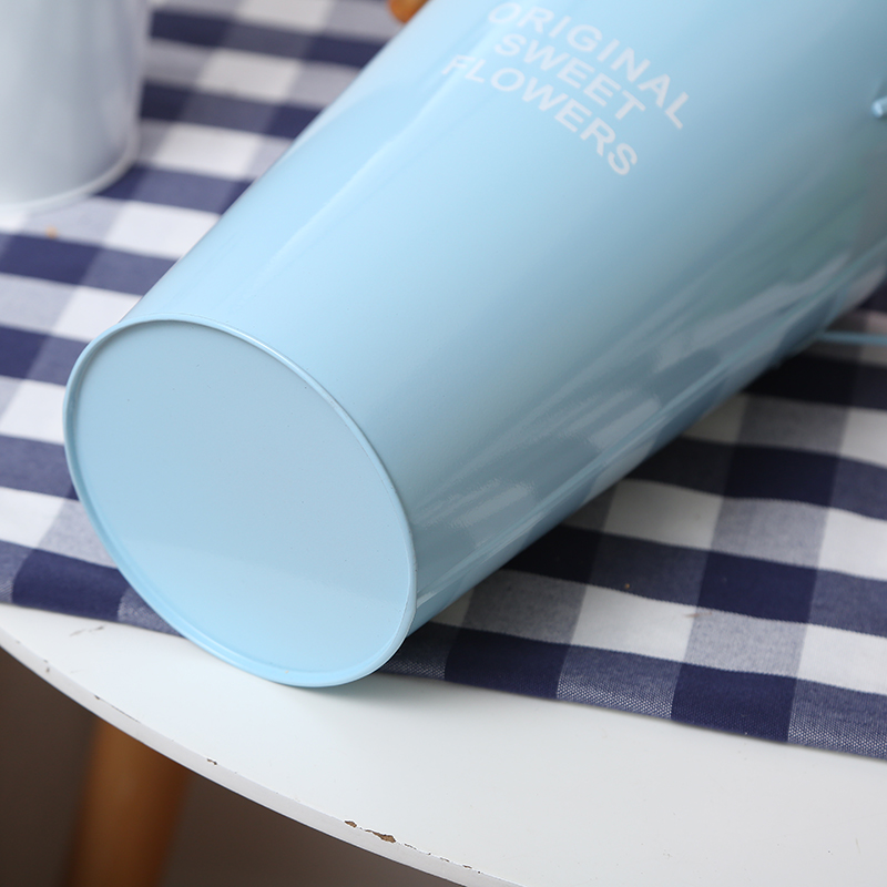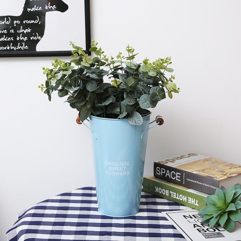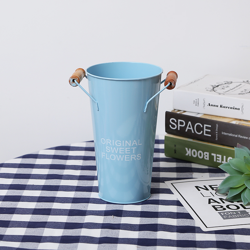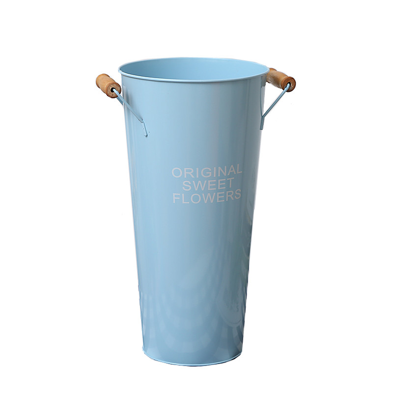 Blue tin flower bucket Pastoral wind florist flower bucket Waterproof flower arrangement living room decoration bucket Portable iron bucket Iron vase