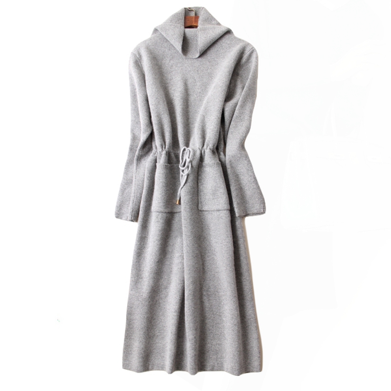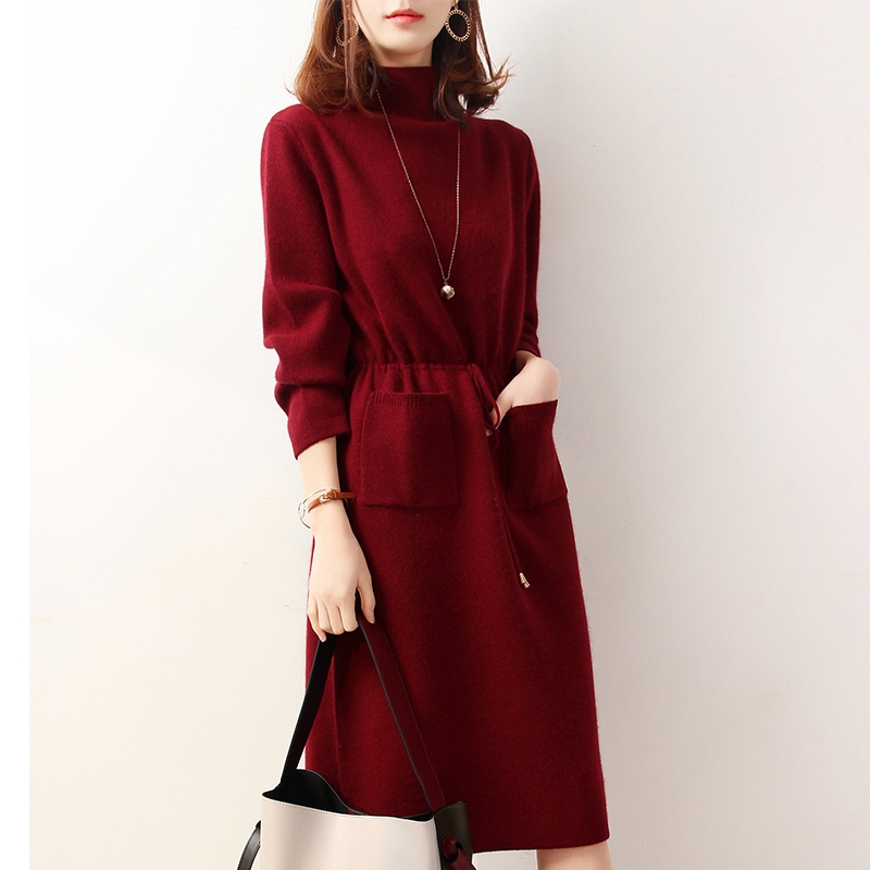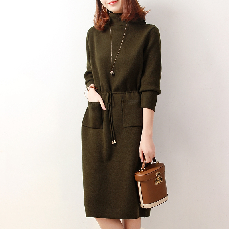 SADO YINER cashmere pullover knitted dress women's 2021 new thickened knee-high collar base skirt winter